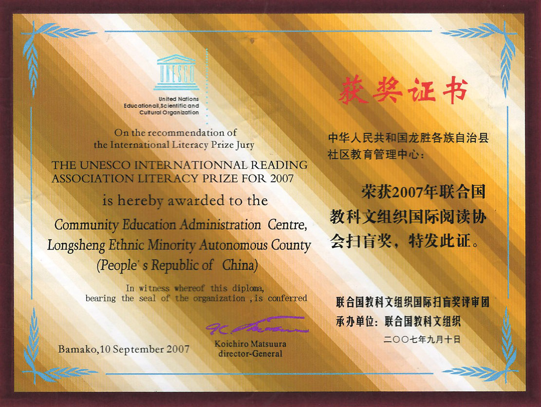 CLC項目實施初見成效——榮獲聯合國教科文組織“國際閱讀協會掃盲獎”