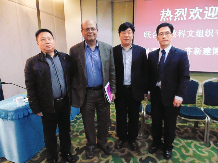 馬富強(左一)、曼蘇·艾哈邁德(左二)與農教中心齊新建博士(右一)在2014年CLC項目年會上