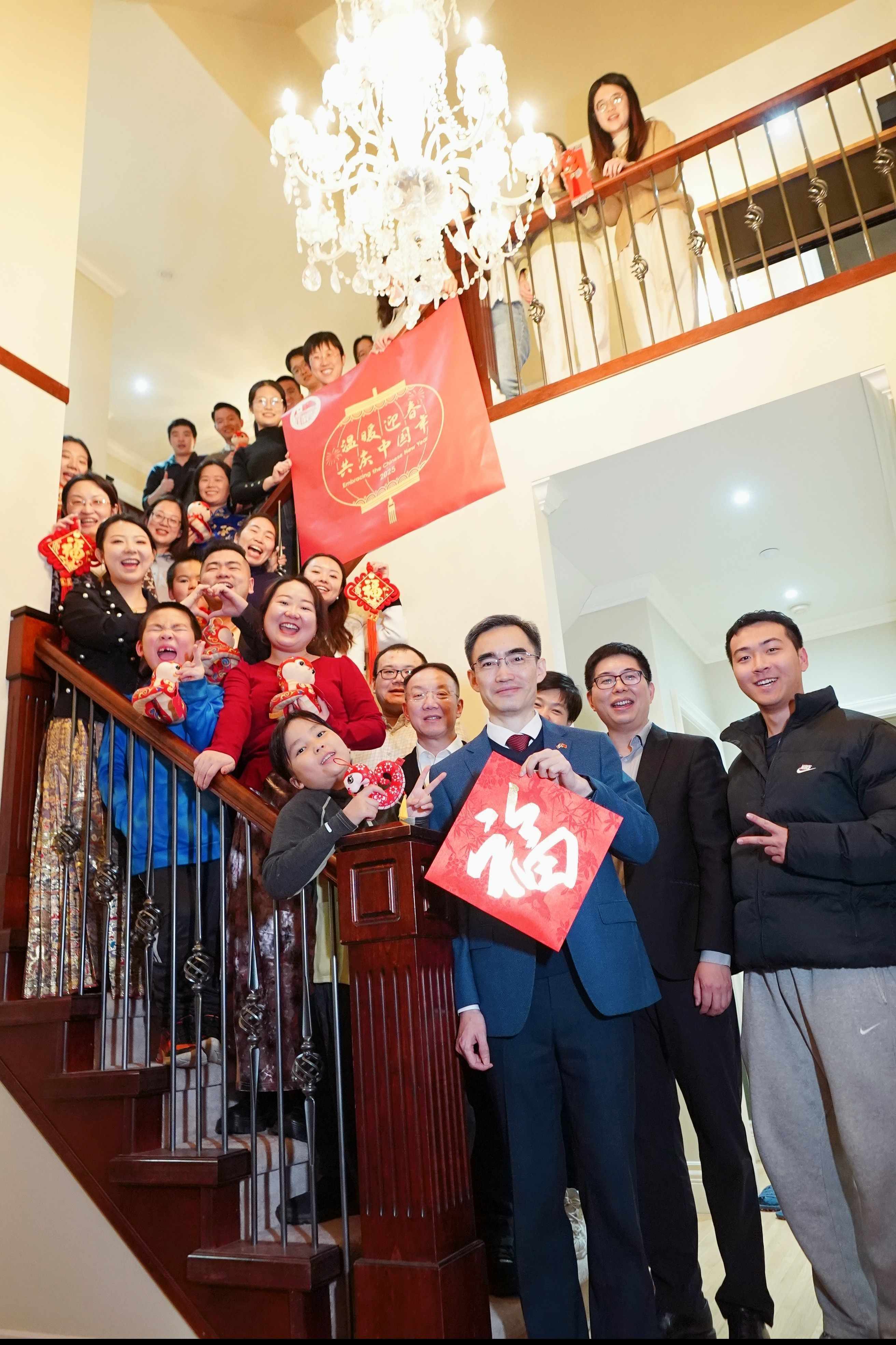 楊舒向領區廣大中國留學人員致以新春問候和美好祝福,表示留學人員是黨和人民的寶貴財富,是實現高質量發展、推進中國式現代化的重要力量。祖國和總領館一直牽掛同學們的健康和安全、學習和成長,將為大家平安留學、成功留學保駕護航。希望同學們肩負新時代海外青年的責任和使命,為祖國建設發展和中加民間友好貢獻力量。