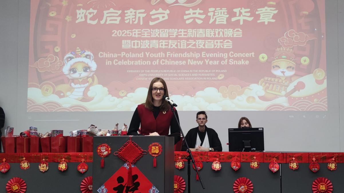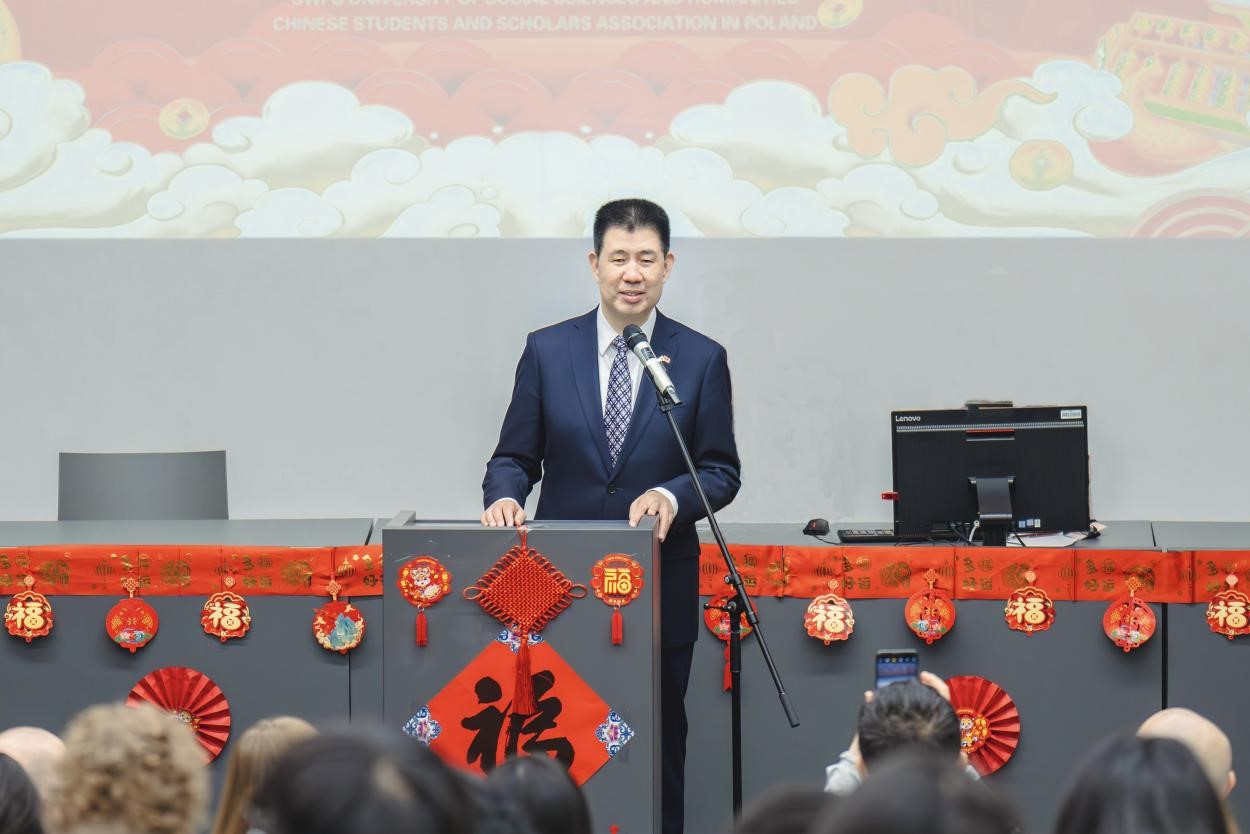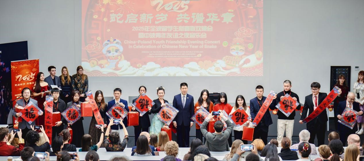 神州學(xué)人網(wǎng)訊 1月27日,駐波蘭使館和華沙社會(huì)人文大學(xué)、中國(guó)學(xué)生學(xué)者聯(lián)誼會(huì)共同舉辦“蛇啟新歲 共譜華章”2025年全波留學(xué)生新春聯(lián)歡晚會(huì)暨中波青年友誼之夜音樂(lè)會(huì),駐波蘭大使孫霖江、華沙社會(huì)人文大學(xué)副校長(zhǎng)格魯什琴斯卡同400余名中波師生共慶新春。