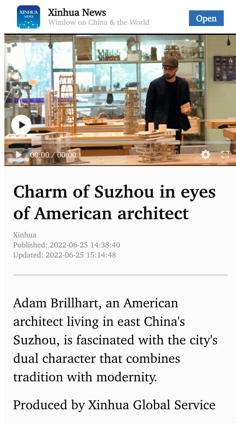 2022年6月,新華社《全球連線》欄目報道西交利物浦大學設計學院亞當·布里爾哈特博士在蘇州工業園區教學并參與古城保護的真實故事