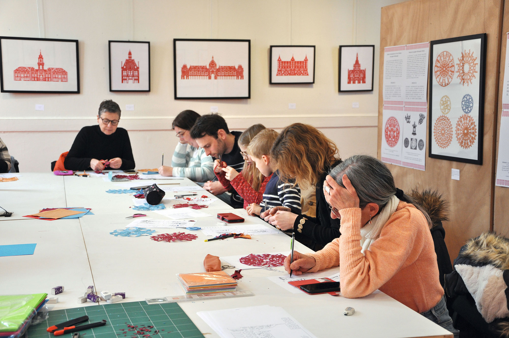 法國布列塔尼孔子學(xué)院學(xué)員們參加剪紙?bào)w驗(yàn)活動(dòng)