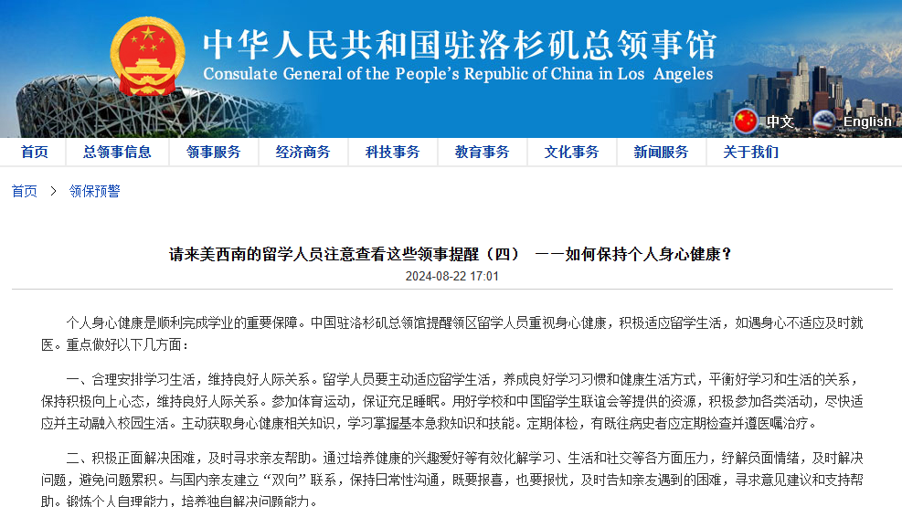 駐紐約總領事館提醒在美留學生避免失蹤失聯