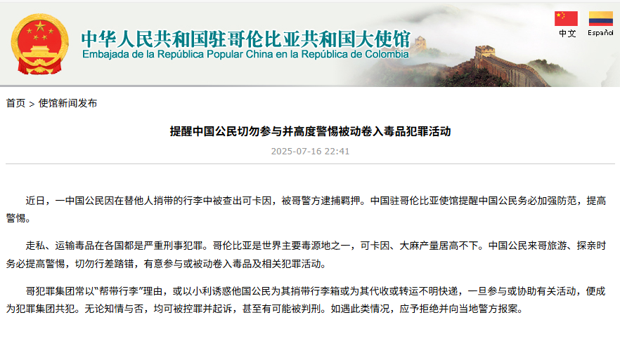 中國公民來哥旅游、探親時務必提高警惕,切勿行差踏錯,有意參與或被動卷入毒品及相關犯罪活動。