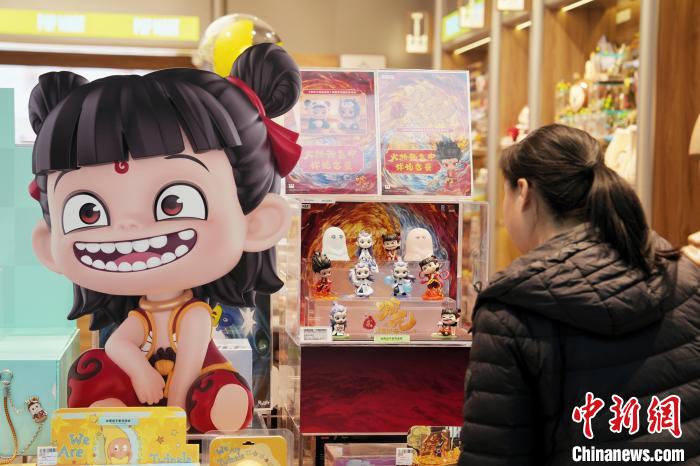 3月5日,北京一商鋪內的電影《哪吒2》系列周邊商品吸引消費者。當日,2025年政府工作報告提出,今年將實施提振消費專項行動。 中新社記者 張祥毅 攝