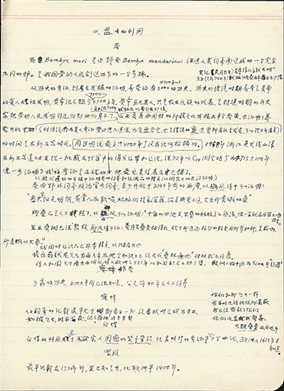 一方面,除蠶桑和蝗蟲外,古代沒有其他昆蟲的系統記錄。很多材料都分散在浩如煙海的各類古籍中,而且年代不易考證,文詞深奧難懂、語焉不詳,搜集整理需要花費大量精力。另一方面,周堯承擔了很多野外采集、觀察解剖、分類研究的工作,還有數門課程的教學任務,用于整理和搜集史料的時間十分有限。