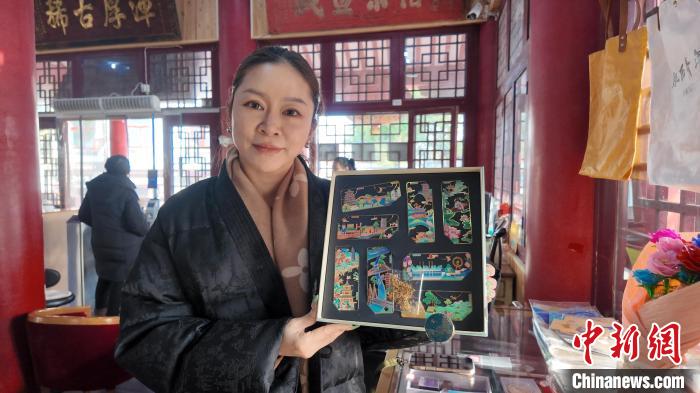 2月24日,婁鳳在三河民俗博物館向記者展示其開發(fā)的文創(chuàng)產(chǎn)品。中新社記者 趙強(qiáng) 攝