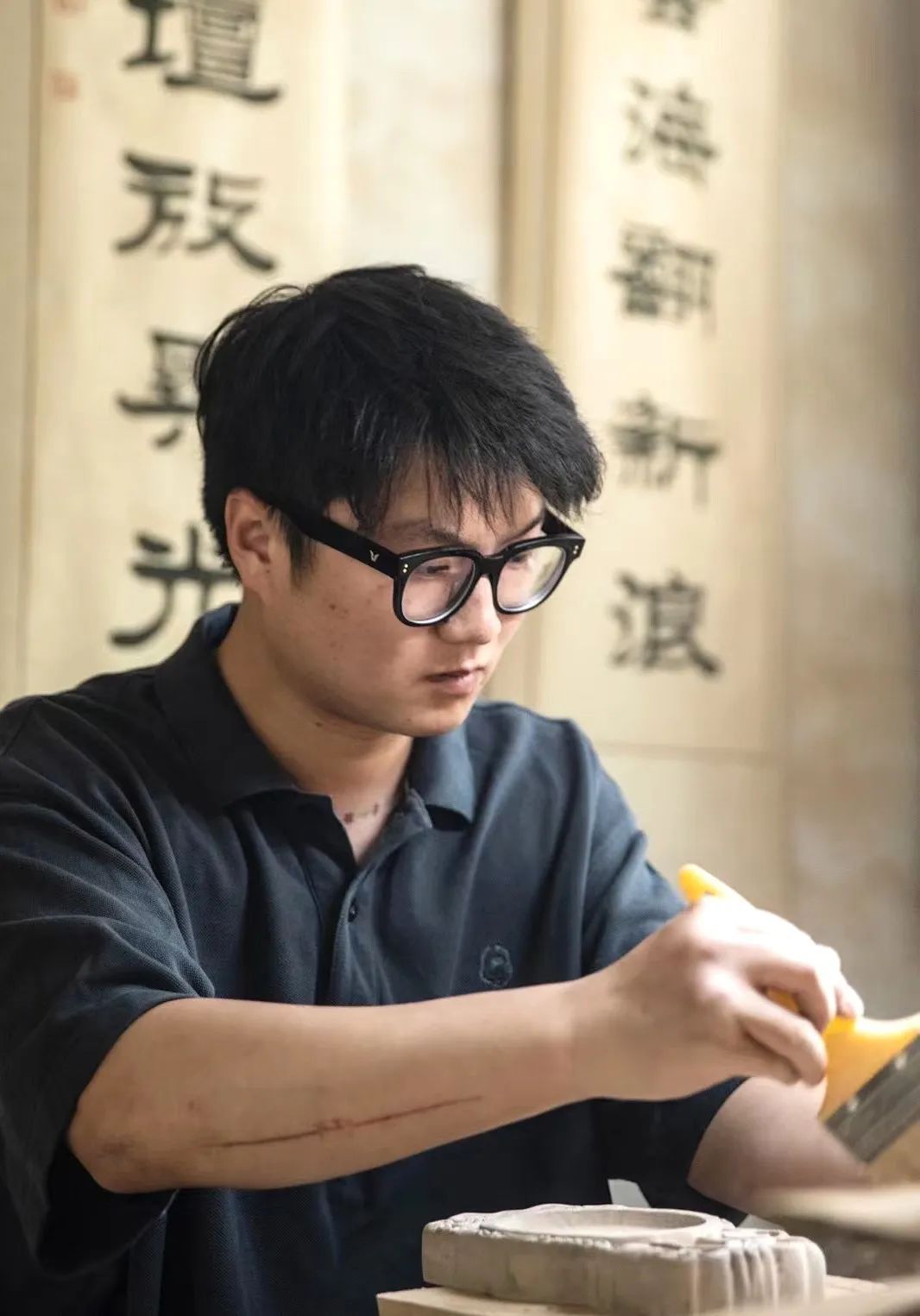 在韓期間,他敏銳觀察到韓國對(duì)傳統(tǒng)漆器、陶瓷的現(xiàn)代化改造。“韓國人將‘螺鈿’技藝融入奢侈品設(shè)計(jì),讓非遺成為年輕人的潮流符號(hào)。這讓我反思,澄泥硯是否也能跳出‘文房古董’的框架?”這段留學(xué)經(jīng)歷給他的藝術(shù)視野打開了一扇新的窗戶,讓他能夠汲取多元的藝術(shù)養(yǎng)分。