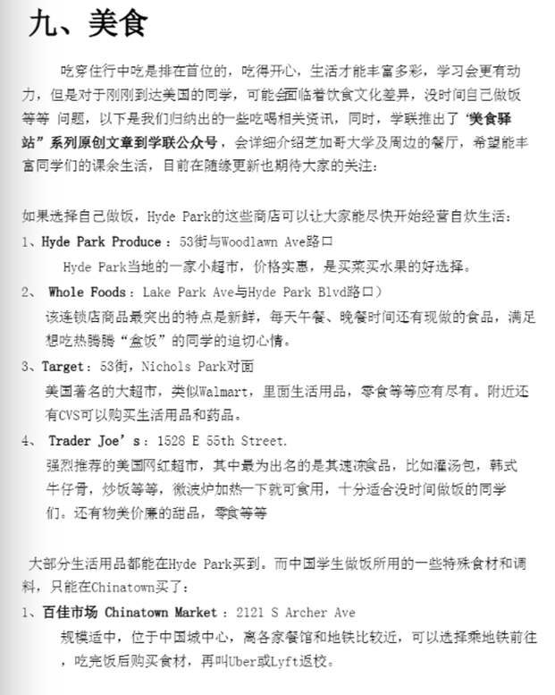 (*注:如遇新生手冊(cè)內(nèi)容與現(xiàn)實(shí)情況有出入,請(qǐng)以實(shí)際為準(zhǔn)。本篇為大家整理提煉了新生手冊(cè)中一些重要和有意思的信息,閱讀完整版請(qǐng)登錄神州學(xué)人網(wǎng)站或關(guān)注芝加哥大學(xué)中國(guó)學(xué)生學(xué)者聯(lián)誼會(huì)微信公眾號(hào)查看。)