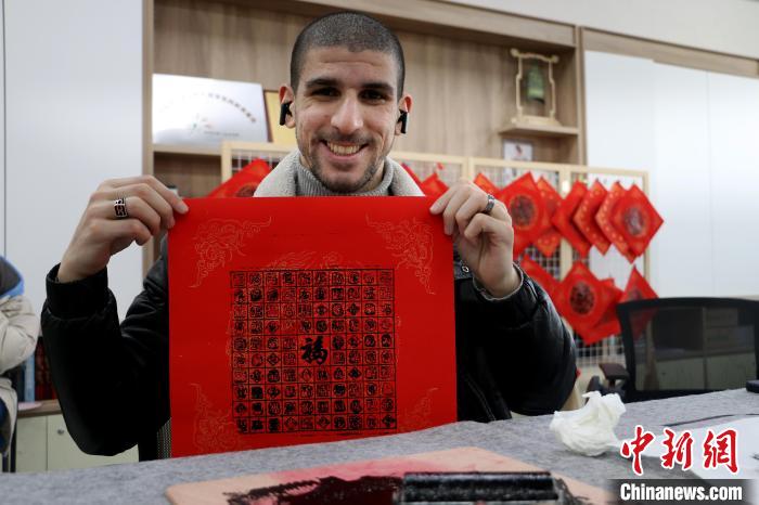 1月29日,一名留學(xué)生在安徽博物院展示自己的拓印作品。張強(qiáng) 攝